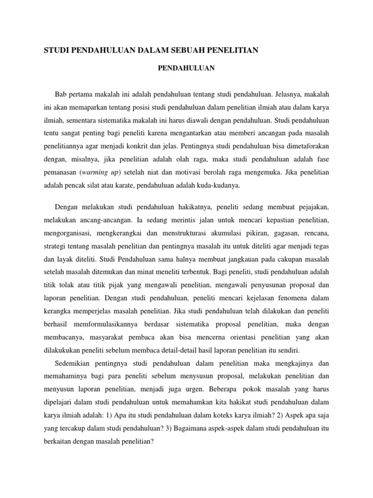 Studi Pendahuluan Dalam Sebuah Penelitian Pdf